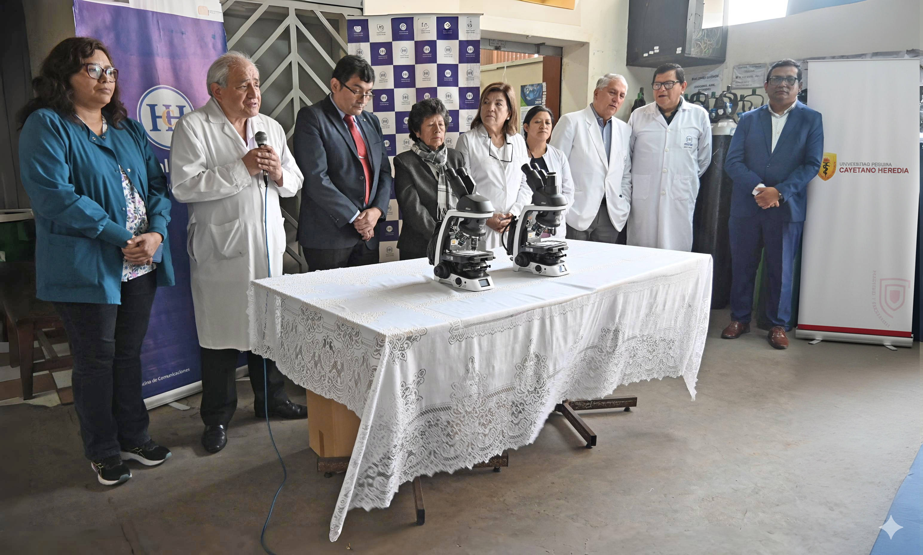 Lima, 10 de noviembre de 2025. — En el marco del Convenio Específico de Cooperación Docente Asistencial entre el Hospital Nacional Cayetano Heredia y la Facultad de Medicina, Estomatología y Enfermería de la Universidad Peruana Cayetano Heredia, se llevó a cabo la entrega de nuevos equipos de microscopía destinados a fortalecer las actividades académicas y asistenciales desarrolladas de manera conjunta.