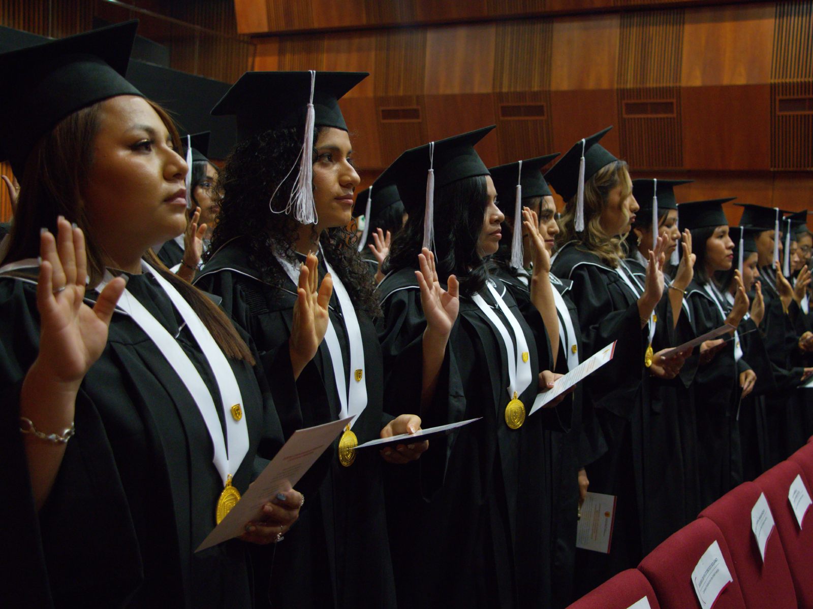 La graduación incluyó momentos significativos como el tradicional cambio de borla y el lanzamiento del birrete, símbolos del cierre de la etapa académica y del inicio de nuevos desafíos en la vida profesional.